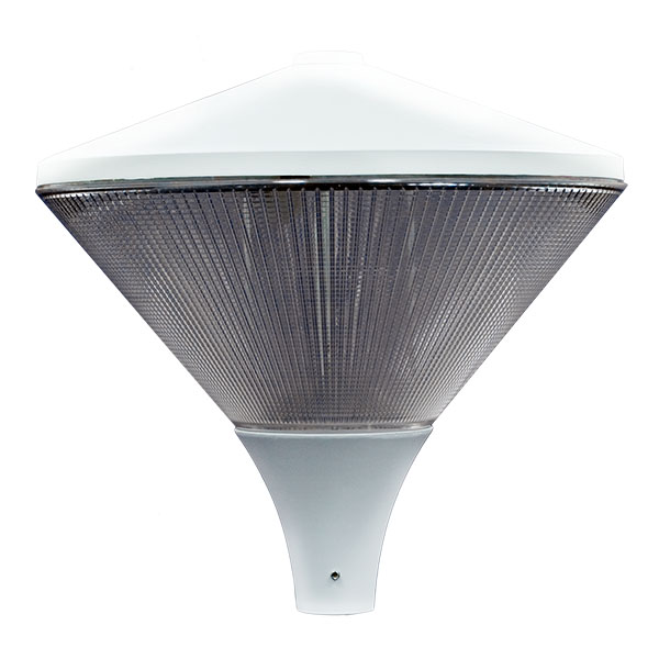 An IP65 grey die-cast aluminium base, clear prismatic polycarbonate diffuser, steel cover and plated steel gear tray. Suitable for walkways, car parks, retail and public areas.